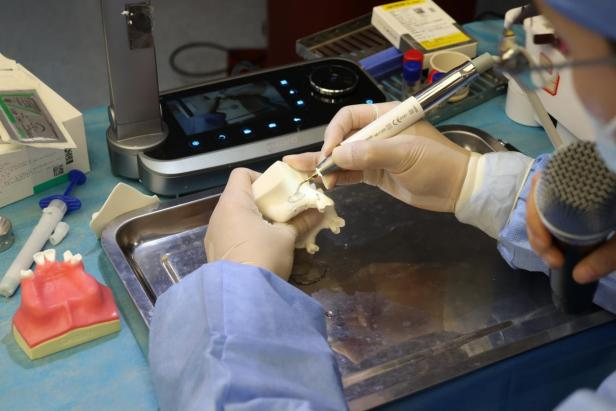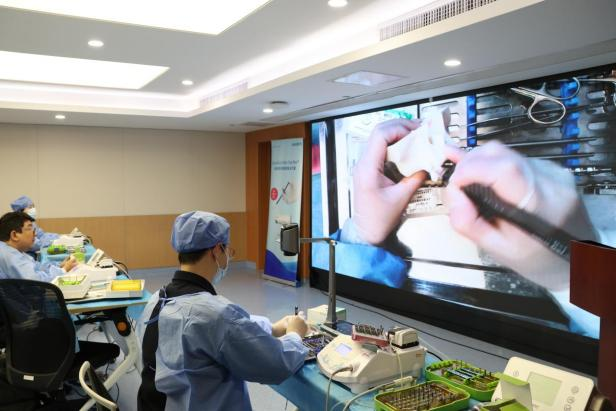 纸上得来终觉浅,绝知此事要躬行。11月23日下午,备受期待的实操课程火热开启。杨帆教授进行了上颌窦外提升手术示教,伍行医师介绍了手术患者的基本资料、病史、影像学以及手术方案的选择,丁榆德医师细致地讲解了手术每一步的操作标准以及注意事项,及时回答各位学员的问题。
