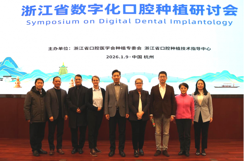为进一步推动数字化技术在口腔种植领域的深度融合与创新应用,提升我省口腔种植诊疗的数字化、精准化水平,加强国际学术交流与合作,由浙江省口腔医学会口腔种植专业委员会、浙江省口腔技术指导中心联合主办的浙江省数字化口腔种植研讨会于2026年1月9日在浙江杭州举办。会议邀请了德国弗莱堡大学牙学院院长Katja Nelson教授,柏林夏里特医院种植修复学科主任Susanne Maria Nahles教授,浙江省口腔医学会会长王慧明教授、副会长杨帆教授、副会长顾新华教授等国内外知名专家围绕数字化口腔种植的核心议题展开深度分享。